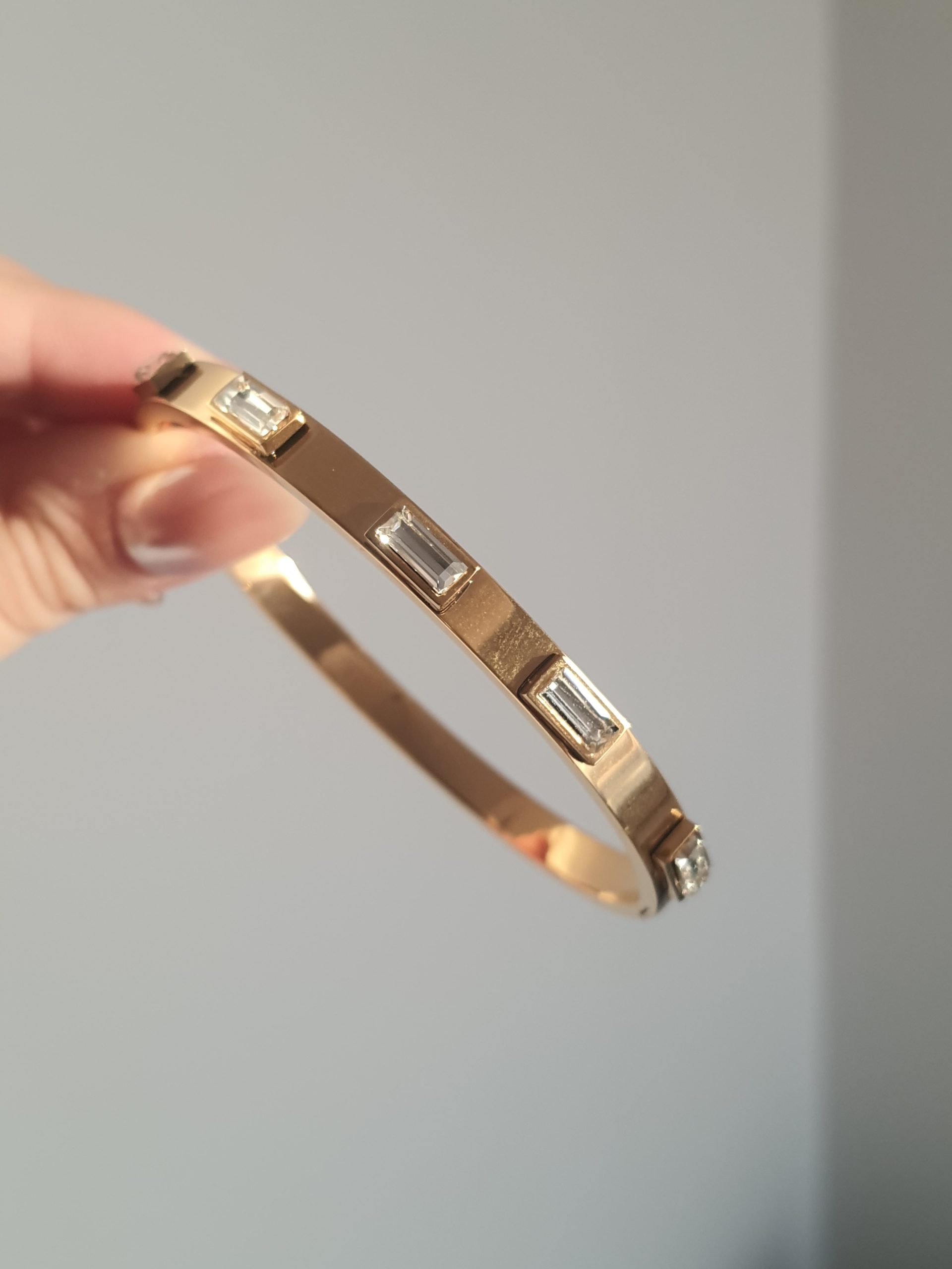 Χειροπέδα Χρυσή με ζιργκόν από Ανοξείδωτο Ατσάλι.